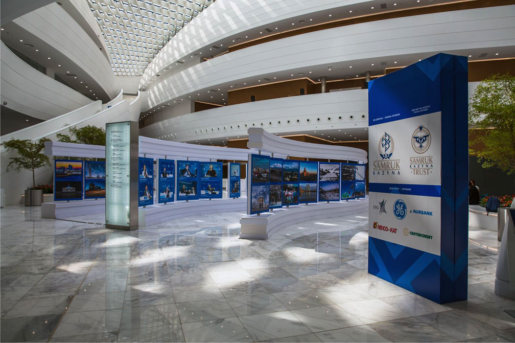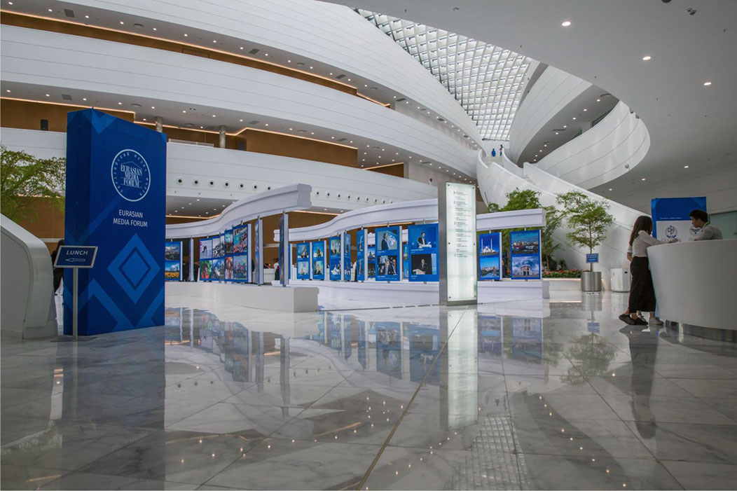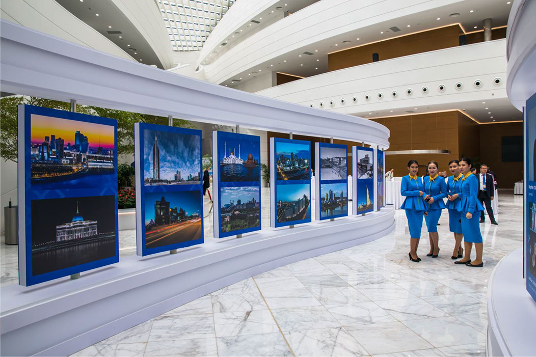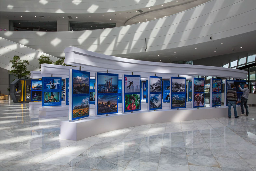 На Евразийском Медиа Форуме в 2017 году, наши фотографии в количестве 108 экземпляров, украсили интерьер нового Когресс- холла (Астана)